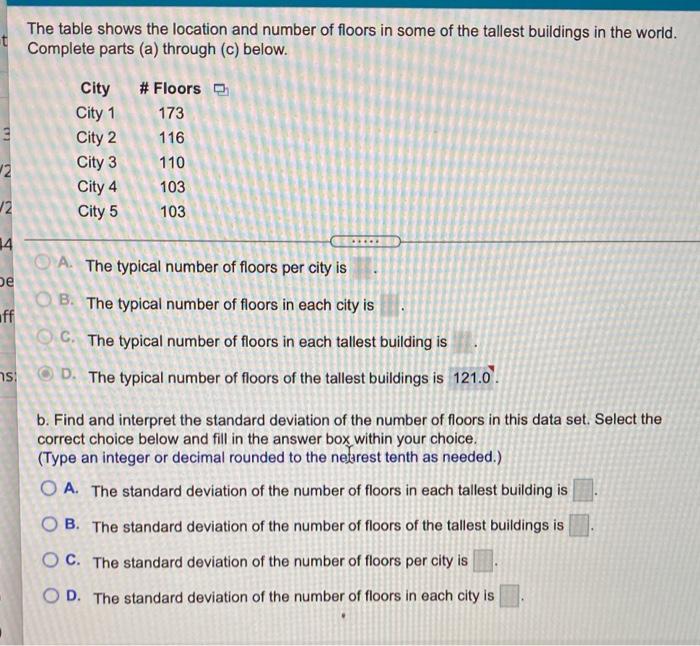 Solved T The Table Shows The Location And Number Of Floors Chegg Com